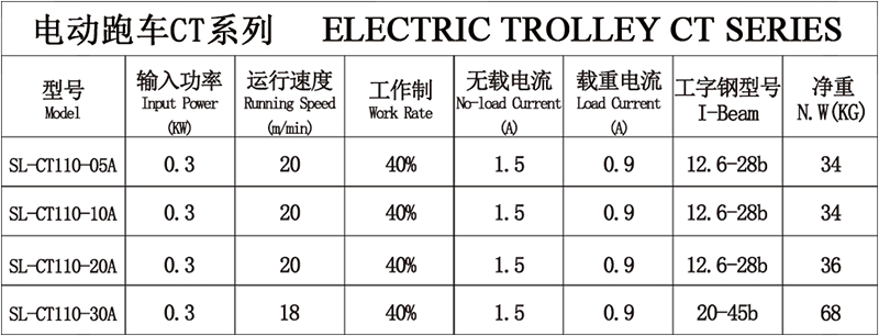可与PA系列微型电动葫芦、手拉葫芦、手扳葫芦配合使用。 转弯半径小、过弯平稳。 适用于80-110宽度的工字钢。 优质碳钢正齿轮,确保跑车平稳运行。 高效率的终身免润滑滚珠轴承。